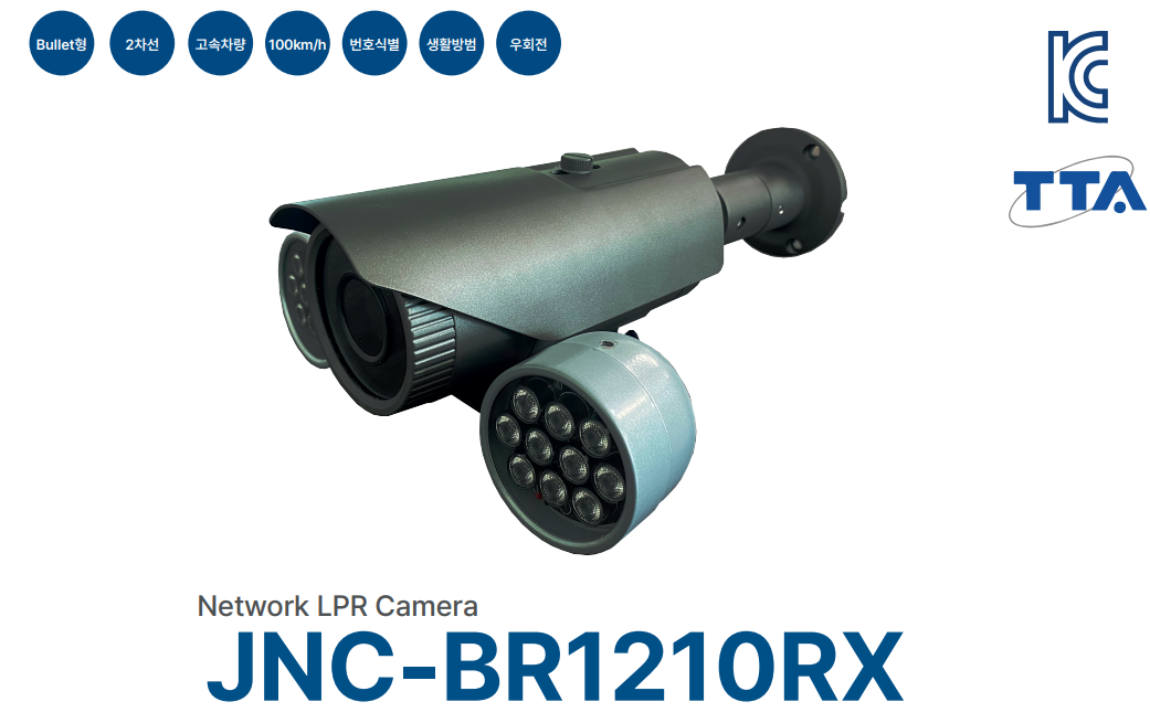 JNC-BR1210R은 뷸렛타입의 소형 CCTV입니다. 생활방범의 넓은 화각에서 야간모드에서 달리는 차량의 번호를 식별할 수 있습니다. 한마디로 가성비 좋고 쌉니다. 이 제품은 고해상도 2메가픽셀 카메라로, 적외선 기능을 통해 어두운 환경에서도 높은 화질로 모니터링이 가능합니다. 따라서 야간에도 번호판을 포함한 세부적인 정보를 식별할 수 있습니다. 또한, TTA 인증을 받은 제품으로 안전하고 신뢰성 있는 효율적 감시를 제공합니다. 제품의 정확한 사양과 기능은 공식 웹사이트나 판매처에서 확인하시기 바랍니다